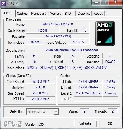 CPU: AMD Athlon II X2 3.1ghz (Stock)