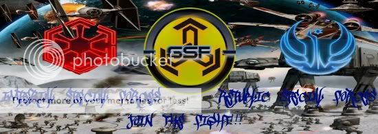 On behalf of my service of duty in Galactic Special Forces(GSF), it would be a great honor for your recruitment as GSF Soldiers, help us embark on a mission as we seek out to bring justice and peace from all those who appose a threat to the Galaxy. Our primary goal is to take part of a Galactic Republic/Galactic Empire armada and have fun whether on our forum page or ingame of SWTOR. We GSF Soldiers are going to have such fun causing mayhem and destruction whether by ground or by space what ever the environment holds against us in such mysterious world. Our GSF Soldiers are ready on standby whether in PVP, PVE, and RP what every the outcome we will have the last battle cry victory of triumph. So Join Galactic Special Forces as we grow strong further our might of the force to help bring balance back to the Galaxy once again...