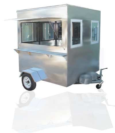 It has full 360 degree windows, all around. It creates a great feeling for your staff. It comes with a triple steamer and a BBQ. This hot dog carts system also has hot & cold water with a sink. Large sliding service windows for easy pass through, double propane baskets so you never run out of gas and a cooler to keep your sodas & meat ice cold. Large locking access door for easy in/out and good security. An ample interior working area allows you plenty of storage as well as a comfortable working environment in all weather with a view. Quality, features and price all combine to make this the best choice in